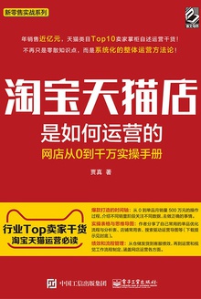 图书简介:《淘宝天猫店是如何运营的——网店从0到千万实操手册》是由天猫TOP10卖家、电商知名讲师贾真写就的一本运营干货书籍。本书的最大卖点就是作者把自己运营店铺的经验系统地总结出来,把碎片化的“干货”形成一个系统的知识体系。本书句句易懂,读后受益!现在网上能看到的电商经验,大多是碎片化知识,零散不成体系,其实很难系统地给卖家提供帮助。本书按照进入淘宝创业的时间线,对从开始犹豫现在做晚不晚到决定做;从选择行业、产品到进货、拍照上架;从产品细节运营优化、搜索到付费推广等;从招聘员工、分工到绩效考核、电商财务、品牌分销等,都进行了详细的介绍。希望本书能够为淘宝天猫运营、创业者提供经验和参考。贾真,淘宝千万级卖家掌柜,涉及类目3c数码配件,女装,家具行业。淘宝搜索客座专家,淘宝大学企业讲师,连续两年获得淘大最高奖。北京大学官方,首期和第三期电商emba讲师。