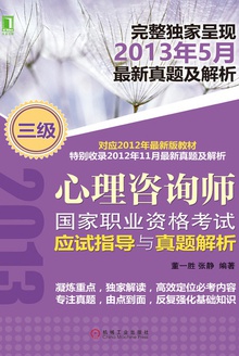 图书简介:本书是为报考心理咨询师国家职业资格考试的考生编写的复习备考用书。人力资源和社会保障部于2001年把心理咨询师考试列入国家职业资格考试,至今已有十余年的历史。从开始每年不足5 000人次的规模,到现在已经突破每年15万人次,随着考生人数的增加,考题的难度也在逐年提高。因此,在大量的知识点中直击考点,达到高效应考的目的是每个考生的愿望。编者在深入分析历年考题的基础上,凭借自己丰富的心理学专业知识和心理咨询师培训从业经验,归纳整理了教材中的重点和难点,详细解析了每道真题,希望能够帮助考生用最少的时间通过心理咨询师考试。董一胜:本科与研究生均就读于浙江大学心理与行为科学系,获心理学博士学位,有多年的心理咨询师培训授课经验,主要讲授课程为基础心理学、社会心理学、测量心理学,已出版多部心理学考试辅导书,包括《2011年全国硕士研究生入学统一考试心理学专业基础综合考试辅导与练习》《2010年全国硕士研究生入学统一考试心理学专业基础综合考试辅导与练习》《心理咨询师国家职业资格考试真题详解(三级)》《心理咨询师国家职业资格考试真题详解(二级)》。